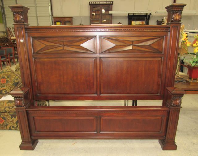King side mini poster bed, high back, has rails, 76"w., 72"h. King side mini poster bed, high back, has rails, 76"w., 72"h.