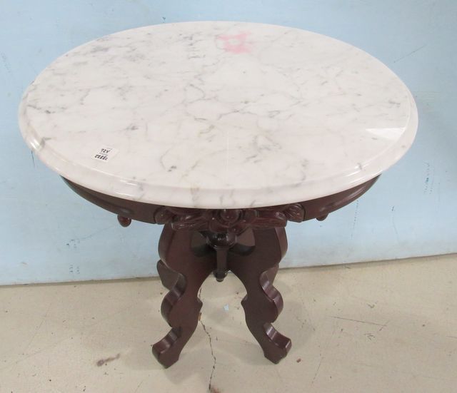 Rose carved marble top lamp table, 26"h., 22"w. Rose carved marble top lamp table, 26"h., 22"w.