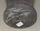 Copper hand made glazed vase by Nathan Bray 2003, Northern Minnesota potter, has crack near rim, 17"h., 6"dia. Copper hand made glazed vase by Nathan Bray 2003, Northern Minnesota potter, has crack near rim, 17"h., 6"dia.