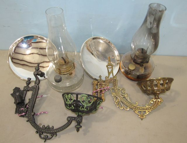 Metal oil lamp wall bracket with mirrors, black and brass color brackets. Metal oil lamp wall bracket with mirrors, black and brass color brackets.
