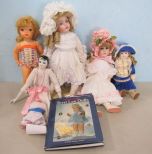 Victorian Bru Jn II Byron mold porcelain 1985 18"h. made by Mary Lacey, Terri Lee 150 16"h. doll book included, Victorian Style Plastic Jointed 1985 18"h., Balos Flapper Late 1980s 20"h (right hand missing fingertips), Victorian Bru Jn II Byron mold porcelain 1985 18"h. made by Mary Lacey, Terri Lee 150 16"h. doll book included, Victorian Style Plastic Jointed 1985 18"h., Balos Flapper Late 1980s 20"h (right hand missing fingertips),