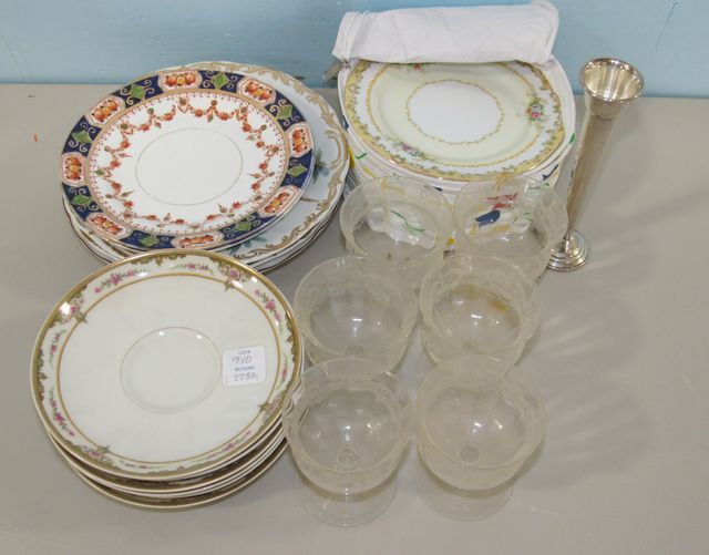 Three Exotic birds by Andrea plates, hand painted Mona dessert plates, Noritake dessert plates, Theodore Haviland saucers, sterling bud vase. Three Exotic birds by Andrea plates, hand painted Mona dessert plates, Noritake dessert plates, Theodore Haviland saucers, sterling bud vase.