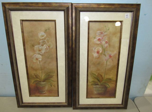 Framed, matted, floral poster, 27"h., 14"w. Framed, matted, floral poster, 27"h., 14"w.