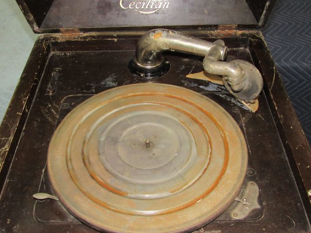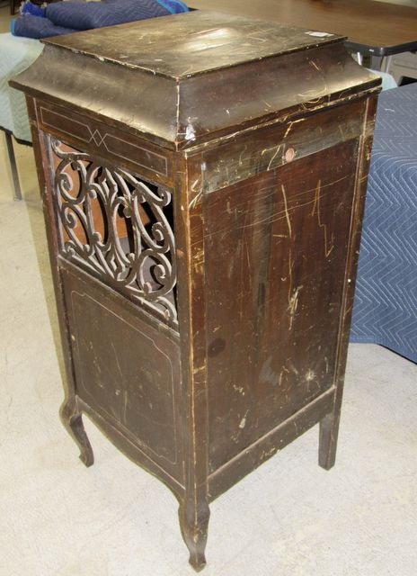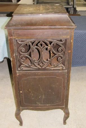 Condition issues, has record player (partial pieces), 43"h., 19"w. Condition issues, has record player (partial pieces), 43"h., 19"w.