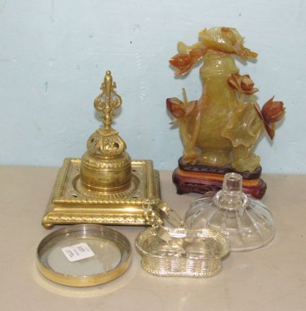 1137 Jade Style Vase, Silver Plate Basket, Glass Insert, Austrian Bell and Bell Stand