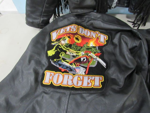 Harley Davidson "Vets don't Forget" jacket, Harley Davidson vest, U.S. Made Leather jacket. Harley Davidson "Vets don't Forget" jacket, Harley Davidson vest, U.S. Made Leather jacket.