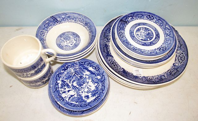 1383 Blue and White Pottery Plates, Bowls, and Mugs