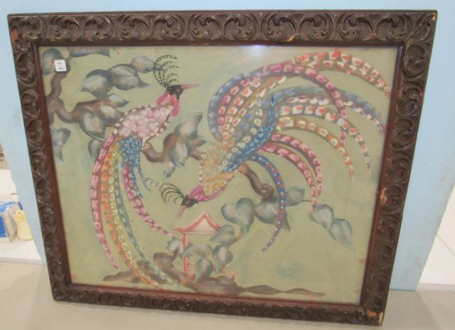 Hand colored print, signed Kam, Framed with glass front, frame has chips, 31"h., 37"w. Hand colored print, signed Kam, Framed with glass front, frame has chips, 31"h., 37"w.