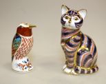 Royal Crown Derby (3 1/2" h.) & cat (5" h.) figurines, the hummingbird has a chip on its beek. Royal Crown Derby (3 1/2" h.) & cat (5" h.) figurines, the hummingbird has a chip on its beek.