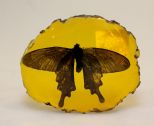 Baltic amber paperweight with incased moth.; 4" w. Baltic amber paperweight with incased moth.; 4" w.