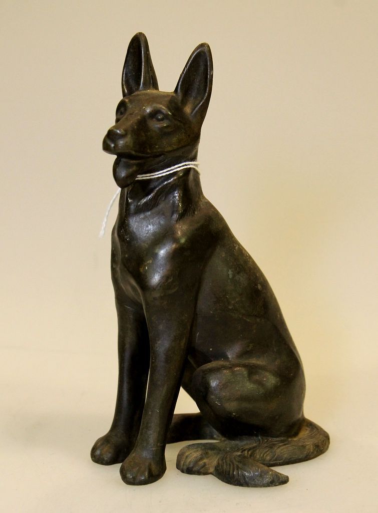 Cast bronze German Shephard figurine.; 6 1/2" h. Cast bronze German Shephard figurine.; 6 1/2" h.