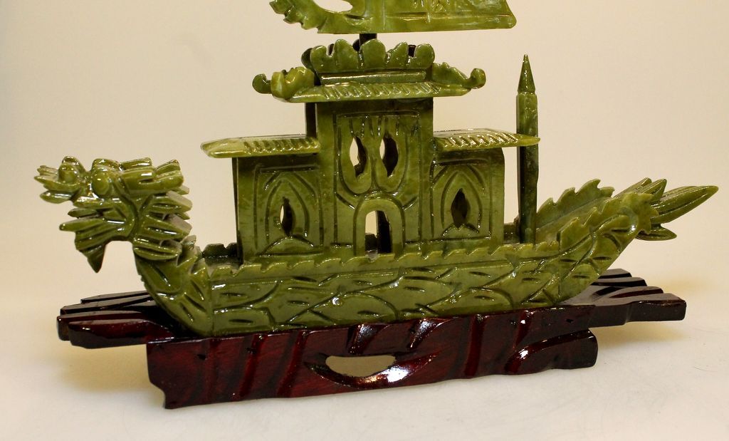 Jade dragon boat with stand, one piece needs gluing.; 9" h. Jade dragon boat with stand, one piece needs gluing.; 9" h.