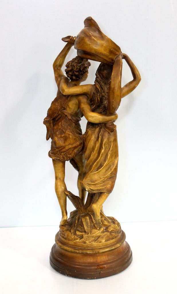 Large 20th Century composition statue of Paul and Virginia which is hand painted, giving antique appearance.; 28" tall, 10" dia. Large 20th Century composition statue of Paul and Virginia which is hand painted, giving antique appearance.; 28" tall, 10" dia.