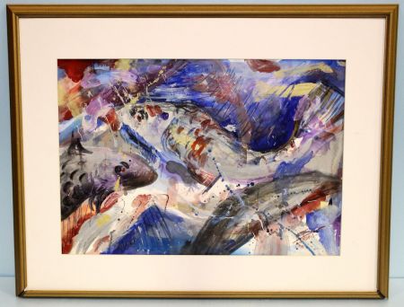 Abstract watercolor signed S F Trent.; 26 1/2" w., 20" h. Abstract watercolor signed S F Trent.; 26 1/2" w., 20" h.