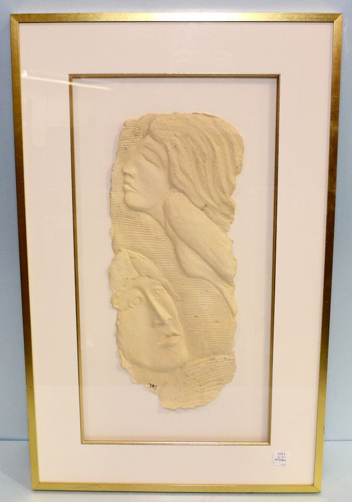 Pressed paper of two faces, signed Day (David Day, Memphis artist).; 19" w., 29 1/2" h. Pressed paper of two faces, signed Day (David Day, Memphis artist).; 19" w., 29 1/2" h.