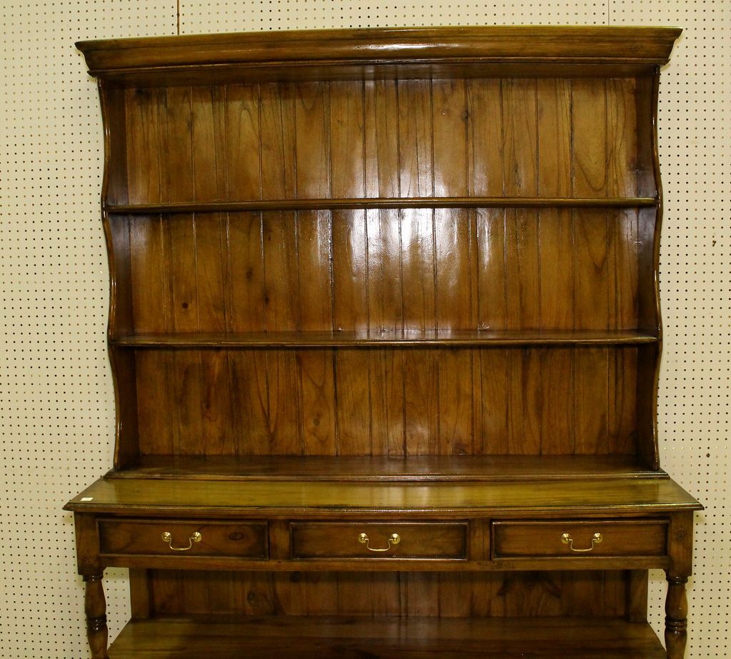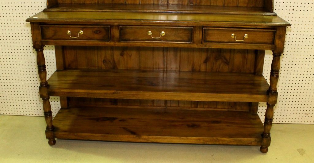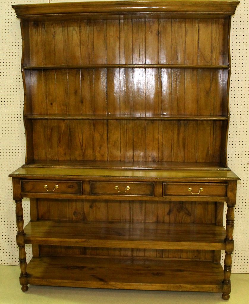 Two piece hutch with three drawers over open base with shelf.; 61" w., 82" h., 18" d. Two piece hutch with three drawers over open base with shelf.; 61" w., 82" h., 18" d.