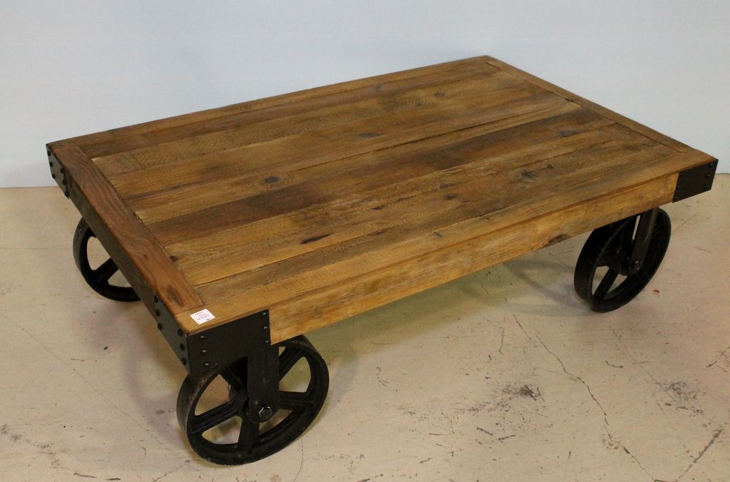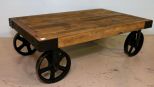 New wood and metal industrial cart.; 43 1/2" w., 14" h., 28" d. New wood and metal industrial cart.; 43 1/2" w., 14" h., 28" d.