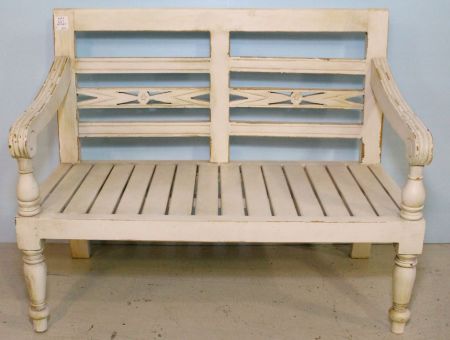 White child's bench with arms.; 26" w., 21" h., 12" d. White child's bench with arms.; 26" w., 21" h., 12" d.
