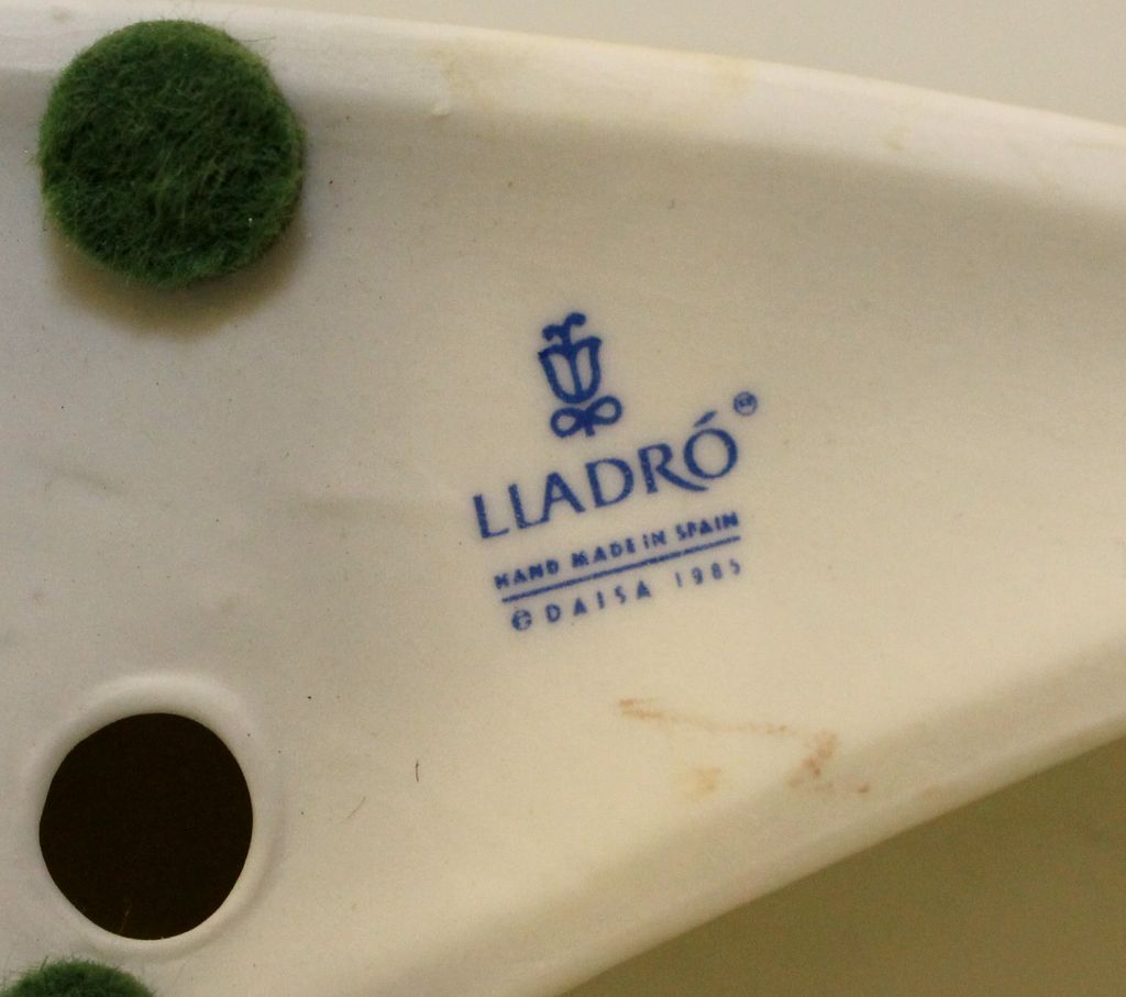 Bisque Lladro collection society sign of man in chair.; 6" w., 4" h. Bisque Lladro collection society sign of man in chair.; 6" w., 4" h.