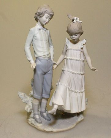 Bisque figurine one, two, three by Lladro, signed and dated 9-29-92 mint condition in original box.; 11" h. Bisque figurine one, two, three by Lladro, signed and dated 9-29-92 mint condition in original box.; 11" h.