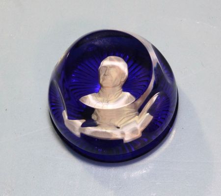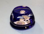 Baccarat paperweight with classical portrait, cobalt base.; 4" dia. Baccarat paperweight with classical portrait, cobalt base.; 4" dia.