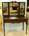 Mahogany triple mirror vanity with two drawers. Mahogany triple mirror vanity with two drawers.