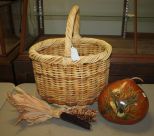 831 Large Basket with Handpainted Gourd with Duck 12"dia.