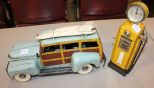 852 Handpainted Woody with Ski on Top and Gas Pump Made in China Handpainted Woody with Ski on Top 14" and Gas Pump 10"h.