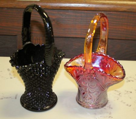 Two Brides Baskets One Black Westmoreland, one carnival marked s, 9"h. Two Brides Baskets One Black Westmoreland, one carnival marked s, 9"h.