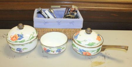 Villeray & Boch Cookware Villeray & Boch Cookware made in Germany along with basket of bar tools. Villeray & Boch Cookware Villeray & Boch Cookware made in Germany along with basket of bar tools.