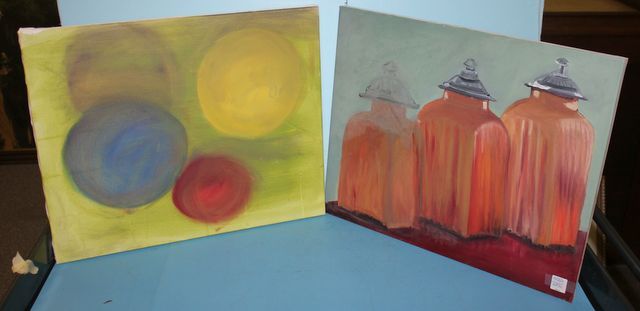 Unframed Painting of Jars, and Painting of Balls 20"w., 16"h. Unframed Painting of Jars, and Painting of Balls 20"w., 16"h.