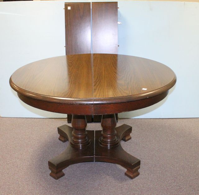 Round Contemporary Dining Table with Two Leaves 47"dia., each leave 10"w. Round Contemporary Dining Table with Two Leaves 47"dia., each leave 10"w.