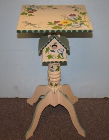 Painted Stand/Birdhouse 13"sq., 28"h. Painted Stand/Birdhouse 13"sq., 28"h.