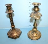Two Odd Brass Candlesticks 8"h. Two Odd Brass Candlesticks 8"h.