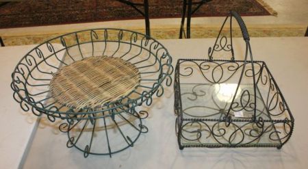 Round Metal Cake Stand and Sqaure Metal Basket Round Metal Cake Stand 14"dia., and Sqaure Metal Basket with glass bottom 11"sq. Round Metal Cake Stand and Sqaure Metal Basket Round Metal Cake Stand 14"dia., and Sqaure Metal Basket with glass bottom 11"sq.