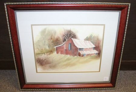 Esmer Thomas (MS) Artist Watercolor of Barn Signed Lower Left 23"w., 20"h. Esmer Thomas (MS) Artist Watercolor of Barn Signed Lower Left 23"w., 20"h.