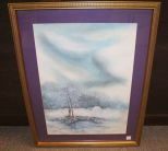 Watercolor of Snow Scene in the Countryside Signed Esmer Thomas 23"w., 30"h. Watercolor of Snow Scene in the Countryside Signed Esmer Thomas 23"w., 30"h.