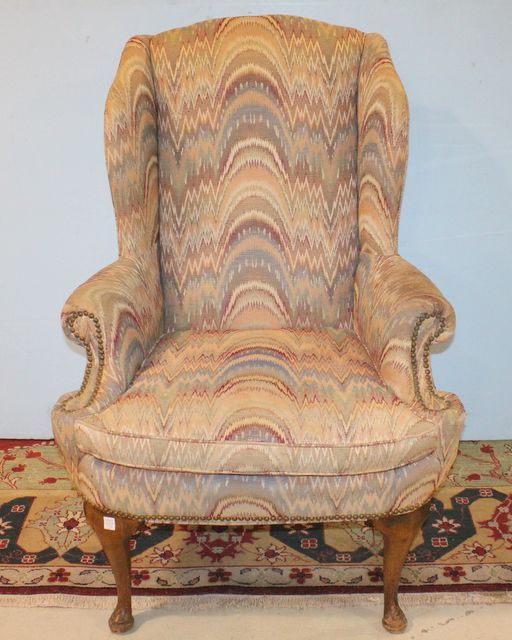 1047 Vintage Wing Chair in Flame Stitch 31"w., 46"h.