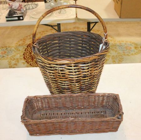 1086 Vintage Bread Basket and Gathering Baskets 25"h.