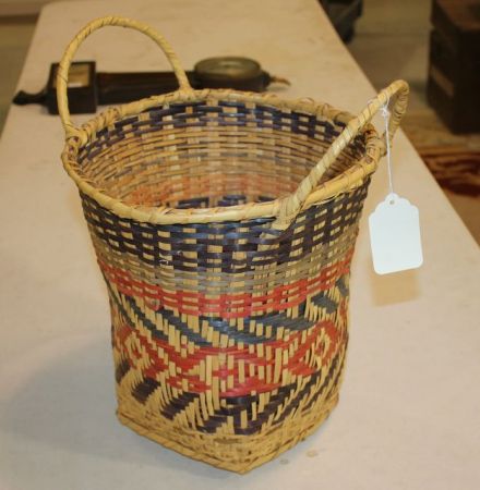 Multi Colored Choctow Basket with Handles 16"h. x 12" dia. Multi Colored Choctow Basket with Handles 16"h. x 12" dia.