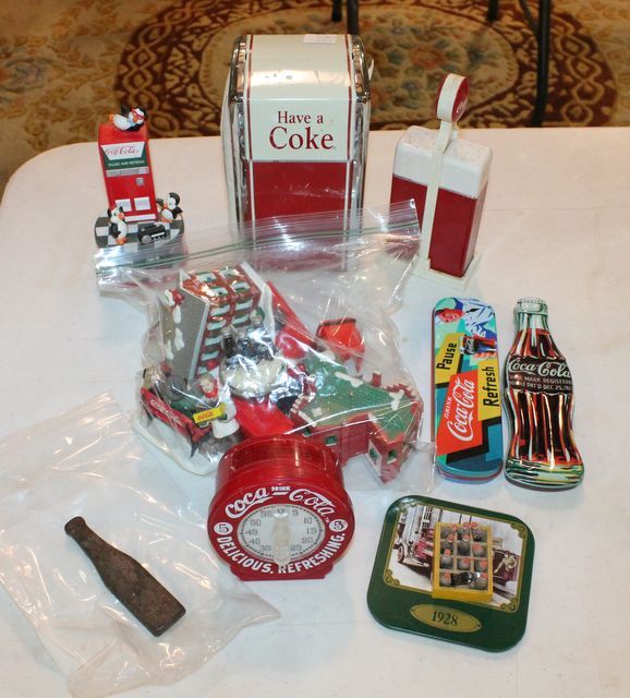 Group of Coke Collectibles include napkin holder and tins Group of Coke Collectibles include napkin holder and tins