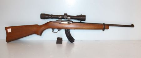 Carbine 22 LR. Caliber ; with scope and two original clips, ram line Carbine 22 LR. Caliber ; with scope and two original clips, ram line
