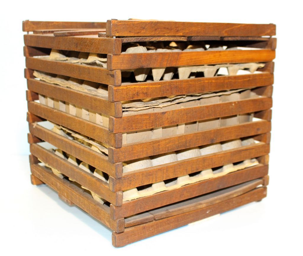 Early American wood egg crate; 12 1/2 " sq., 12" h. Early American wood egg crate; 12 1/2 " sq., 12" h.