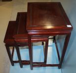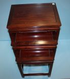 Three contemporary oriental style nesting tables; one 14" w., 19" h.; second 16" w., 20" h. ; third 19 1/2 w., 26" h. Three contemporary oriental style nesting tables; one 14" w., 19" h.; second 16" w., 20" h. ; third 19 1/2 w., 26" h.