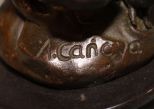 Signed A. Canova bronze of young man carrying a fishing pole on marble base; 13 1/2" h. Signed A. Canova bronze of young man carrying a fishing pole on marble base; 13 1/2" h.