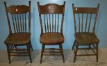 Three 20th century oak pressed back side chairs Three 20th century oak pressed back side chairs
