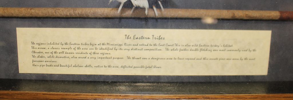 Framed chocker and arrow; from Eastern tribe; 33 1/2" w., 9 1/2" h. Framed chocker and arrow; from Eastern tribe; 33 1/2" w., 9 1/2" h.