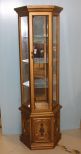 Vintage gold curio cabinet with glass shelves (lighted); 20" w., 72" h. Vintage gold curio cabinet with glass shelves (lighted); 20" w., 72" h.
