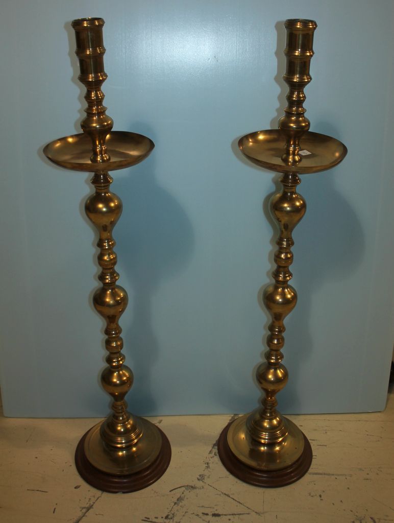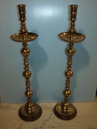 340 Pair Large Brass Candle Stands