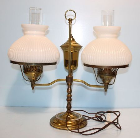 351 Double Arm Brass Student Lamp with Milk Glass Shades